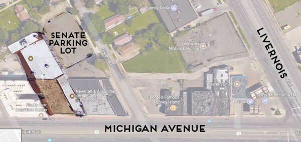 Parking is available in our gated lot, on Gilbert, and Michigan Avenue