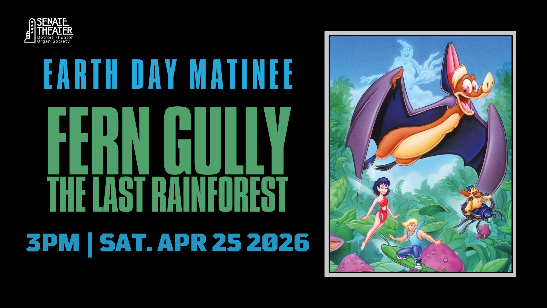 Green Living Science, a Detroit-based environmental education and green space stewardship nonprofit focused on recycling, sustainability, and community engagement, will be in attendance at the special screening of FernGully. For the past 15 years, the organization has brought interactive environmental lessons to more than 200,000 students, supported neighborhood parks throughout Detroit, provided recycling resources, and helped local businesses strengthen their sustainability practices. At the screening, representatives from Green Living Science will be on hand to celebrate the film’s environmental message with families and young moviegoers, offering fun and educational materials—including free activity books for kids—so children can continue learning about protecting the planet long after the movie ends. Their presence adds a hands-on, community-focused element to the event, helping inspire the next generation of planet protectors while connecting Detroit families with local environmental champions who work every day to keep the city greener.
